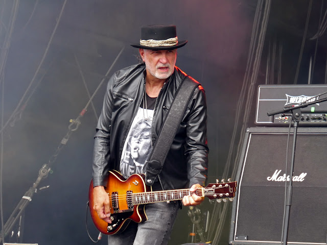 Na een korte pauze was daar de Duitse thrashmetalband Destruction, al opgericht in 1982. Ze behoren bij de "Big Four" van de Duitse thrash metal scene, samen met Kreator, Sodom en Tankard. De vroege releases van de band worden door sommigen beschouwd als klassiekers binnen het thrash metal genre. In april 2022 kwam het vijftiende studioalbum "Diabolical" uit ter ere van het 40-jarig jubileum van de band en op 7 maart jongstleden alweer hun zestiende studioalbum "Birth of Malice". Alhoewel er weinig verrassingen in de releases van de laatste jaren zitten is het toch een wat beter album geworden waarvan vanavond enkele nummers gespeeld worden in de korte tijd die de band krijgt. Met "Scumbag Human Race", "No Kings No Masters" en "Destruction" wordt het nieuwste album toch behoorlijk in het zonnetje gezet. Bassist en zanger Schmier is de enige die over is van de originele line-up. Hij wordt geflankeerd door twee jonge gitaristen die gretig hun ding staan te doen. Ik, André en zeker Susan (als grote fan van de band) waren zeer te spreken over het gebodene. Afgesloten werd met het nieuwe nummer genoemd naar de naam van de band, eerlijk gezegd vond ik dat nog het minste nummer, maar voor de rest was het een prima optreden.