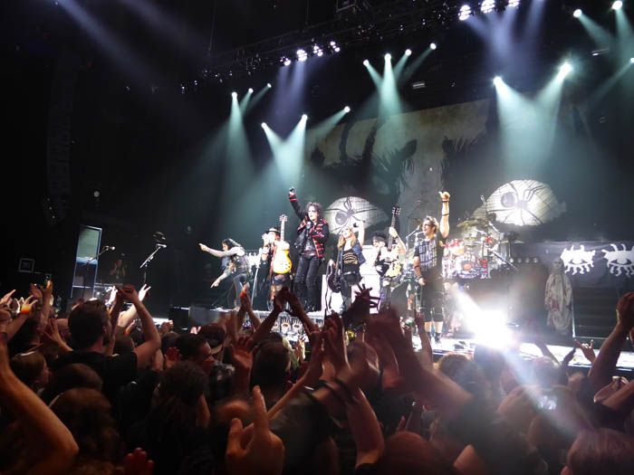 Daarna was het tijd om de doden te eren, met Pinball Wizard (Keith Moon), Suffragette City (David Bowie), Fire (Jimi Hendrix) en met Ace of Spades (Lemmy Kilmister). Wel grappig want toen wij Alice op de Lokerse feesten zagen in 2013 waren de geëerde doden nog Keith Moon, Jimi Hendrix, Jim Morrison en John Lennon geweest. Bassist Chuck Garric zong trouwens Ace of Spades en met de ogen dicht leek het wel of Lemmy weer even uit de dood was op gestaan. Na het onvermijdelijk I'm Eighteen was het alweer afgelopen met School's Out. Snippers, zeepbellen en grote ballonnen vlogen de zaal in. Die werden door Alice één voor één kapot geprikt waarna er een berg confetti uit kwam. Ooit in een ver grijs verleden zat er altijd één ballon met nepbloed bij, maar gelukkig is dat niet meer het geval.