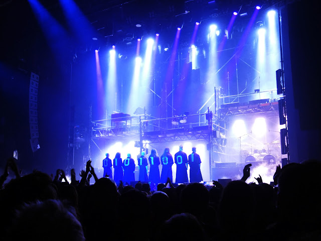 In 2017 en 2019 was ik ook bij het Ayreon spektakel geweest in 013. In 2017 ging het een om een best of show van alle negen rockopera' s en in 2019 om het dubbelalbum Electric Castle. Nu was het dus alweer de derde keer dat Arjen Anthony Lucassen live ging optreden, deze keer kwam het dubbelalbum 01011001 - Live Beneath the Waves aan bod. De hele stad Tilburg stond in het teken van de vijf uitverkochte shows, overal hingen vlaggen en andere leuke gadgets. Aan de vooravond van deze bijzondere concertreeks werd Ayreon geëerd door 013. De Nederlandse componist en multi-instrumentalist Arjen Anthony Lucassen werd vereeuwigd met zijn cd met handtekening op het gebouw, hij is nu de tweede artiest die ooit een gesigneerde cd aan de buitenkant van het 013 gebouw heeft opgehangen.