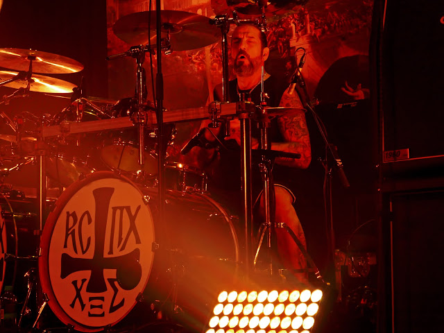 Ondanks de naam zijn de traditionele lyrische thema's van de band met betrekking tot het kwaad en occultisme geëvolueerd naar een meer "mystiek" pad en ze hebben hun muzikale richting op elk album gewijzigd, gebruik makend van elementen zoals zuivere melodische baritonzang, doom, gothic metal en industriële muziek kenmerken, mannelijke / vrouwelijke benedictijnse gezangen. Vanaf de eerste klanken van Aealo is het publiek in de volle zaal in trance. Aealo is de transcriptie van het Oudgriekse woord 'ΕΑΛΩ'' in het Latijnse alfabet. Het betekent catastrofe of vernietiging, en weerspiegelt de muzikale en tekstuele inhoud van het laatst uitgebrachte album "Pro Xristou". De vier heren pakken de aanwezigen al snel in met hun hypnotiserende en krachtige metal. Door het uitstekende geluid zijn alle instrumenten en zang erg zuiver. Sakis Tolis is inmiddels 52 jaar, maar de gitaar spelende frontman van Rotting Christ oogt nog net zo gedreven als bijna 40 jaar geleden. Hij is constant bezig met het publiek en weet de boel ook flink op te zwepen. Het geluid is knalhard maar zuiver en er zijn diverse flinke moshpits. De band moedigt de aanwezigen aan om de vuist in de lucht te steken en mee te klappen. Het was vanavond in de uitverkochte Pandora genieten geblazen van een zeer geslaagde avond. Ze hebben vast veel zieltjes gewonnen, die van mij zeker! Bij de toegift "Noctis Era" ben ik al wel vast gaan lopen, morgen weer heel vroeg uit mijn mandje namelijk.