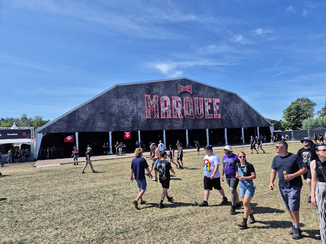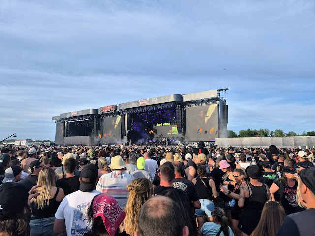 Mijn schoondochter Debora wilde heel graag naar het optreden van Dead Poet Society. Dit betekende dat we na het ontbijt al tegen 11:00 uur in de bus zaten en mooi op tijd bij de South Stage stonden. Rick vond het ook leuk om mee te gaan, Robin ging zwemmen en deed een lunch op het park met Renate. Dead Poet Society is een Amerikaanse rockband die in 2013 in Boston werd opgericht. De band begon als een onafhankelijke groep, die hun nummers zelf produceerde en zelf opnam voordat ze in 2020 tekenden bij Spinefarm Records. Ze brachten hun debuutalbum uit in 2021. Het maakte niet al te veel indruk op me, maar het was uiteindelijk toch wel vermakelijk. Zeker om te zien dat vooral veel jeugdig publiek om me heen het naar de zin had. Voor mij was het gelijk erg fijn dat we zo vroeg op het terrein waren omdat ik graag British Lion wilde zien optreden. Dus schoven we op naar de North Stage.